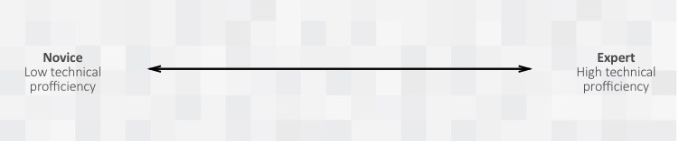To demonstrate how continuums work let's create a set of user types for a fictitious mountain bike park. In our example, we’re going to introduce two continuums. The first one relates to the technical proficiency of riders, resulting in a continuum with ‘novice’ on the left and ‘expert’ on the right: