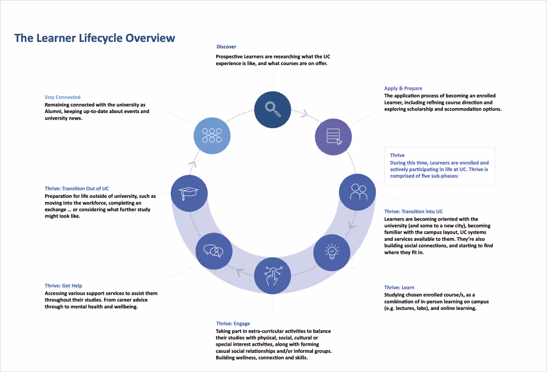 A CX strategy is a strategic framework guiding organisations to design their actions, policies, experiences and operations to deliver a consistent human-centred experience for its customers. CX strategies are developed through the combination of extensive customer research, and analysis of an organisation’s operational processes and strategic goals. These inputs combine to create a view of the customer experience with supporting models and frameworks to help teams develop a deep understanding of the needs of their customers.