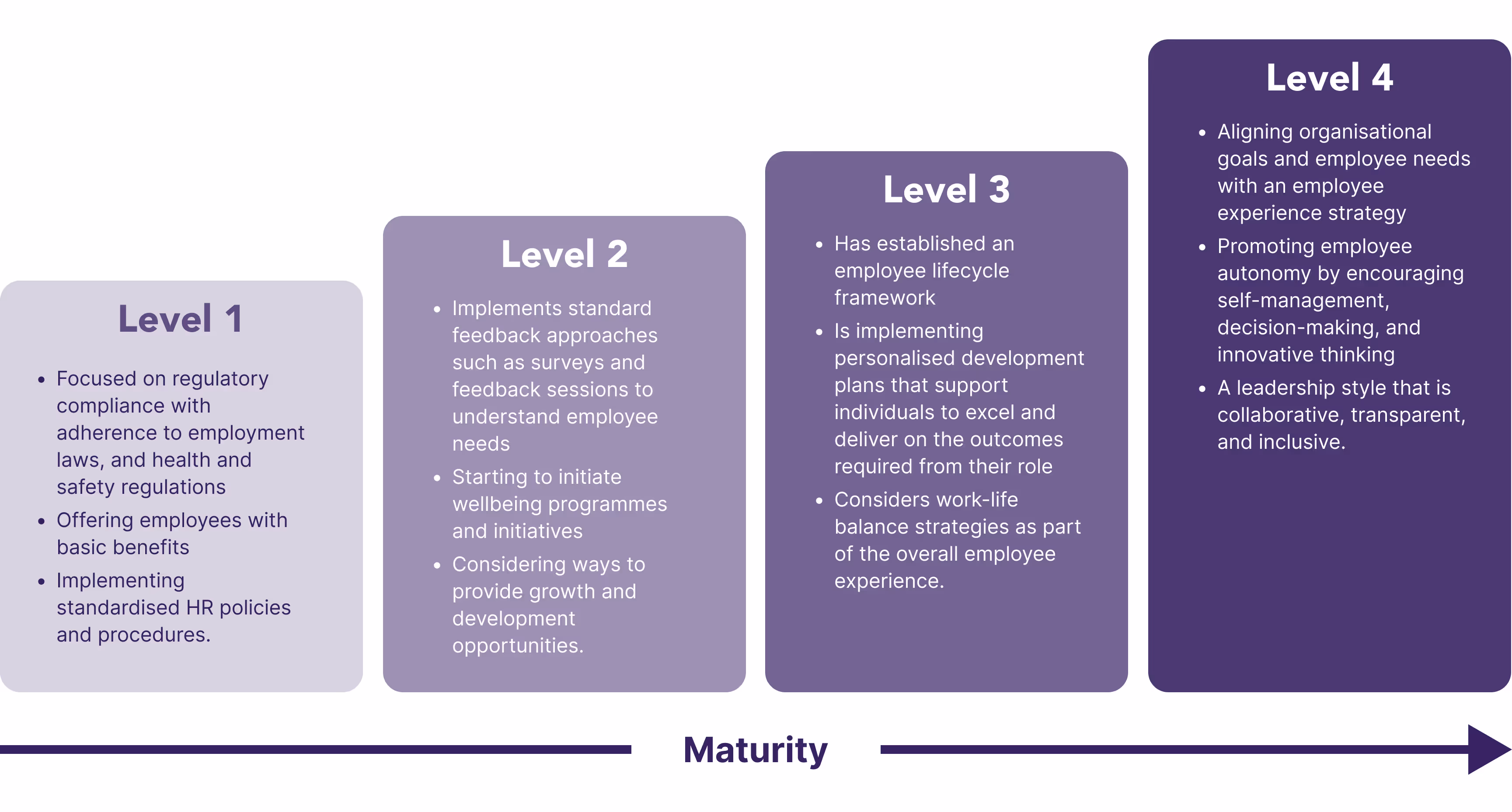 Our Employee Centric Maturity Model is designed to help organisations assess and elevate their focus on the overall employee experience.